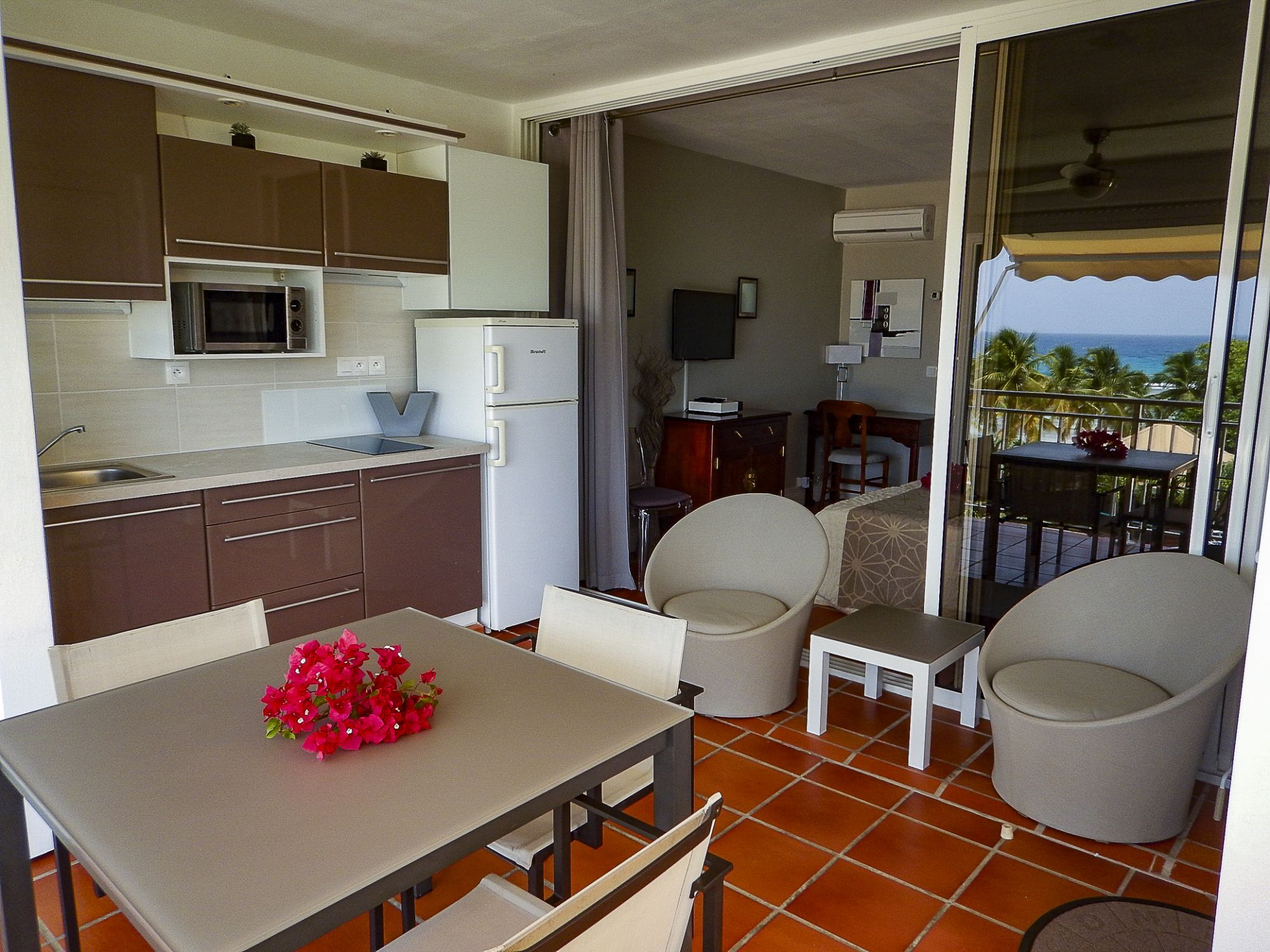 • Cuisine équipée sur terrasse privative (plaques à induction, frigo avec congélateur)